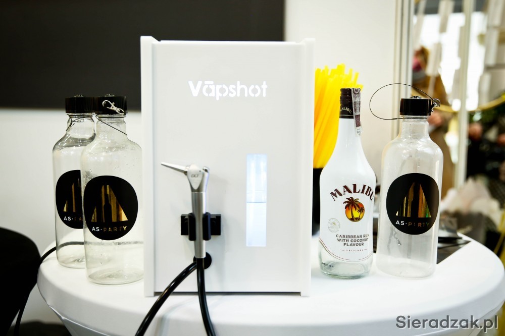 AS-PARTY przedstawia odpowiedź. Vapshot to tajemnicza maszyna, która jednocześnie rozkręca imprezkę i sprawia, że na drugi dzień nie mamy po niej negatywnych skutków ubocznych. Śpieszymy z wyjaśnieniem i prezentujemy nowy sposób na spożywanie alkoholu w postaci pary. Możemy cieszyć się różnymi smakami ulubionych przez Was drinków i tzw „shotów”. Alkohol jest podawany w specjalnie zaprojektowanych pojemnikach, które są pod ciśnieniem i w których można mieszać różne rodzaje alkoholi. Aby poczuć smak wystarczy przekręcić nakrętkę w górę i część cieczy natychmiast będzie parowała nam przed oczami. Para jest spożywana za pomocą słomki i daje natychmiastowy efekt „przyjemności spożywania alkoholu”, gdyż proces ten wydobywa prawdziwy aromat napoju, czyniąc go przyjemnym doświadczeniem. Do przygotowania shotów można użyć różnych rodzajów alkoholu, jak również napojów bezalkoholowych. Ze względu na minimalną ilość alkoholu wykorzystywanego do przygotowania shota polecane są alkohole charakteryzujące się mocnym i wyraźnym smakiem. Wybór należy do Was.