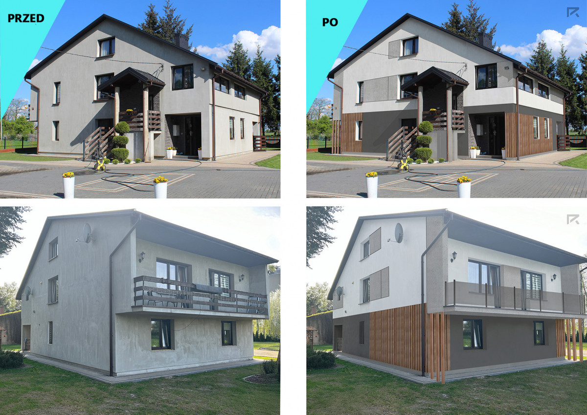 projekt elewacji domu Sieradz | wizualizacja elewacji 3D | nowoczesny projekt elewacji | projekt elewacji z doborem materiałów | projekt elewacji budynku mieszkalnego | wizualizacja elewacji na zdjęciu | elewacja dom jednorodzinny projekt