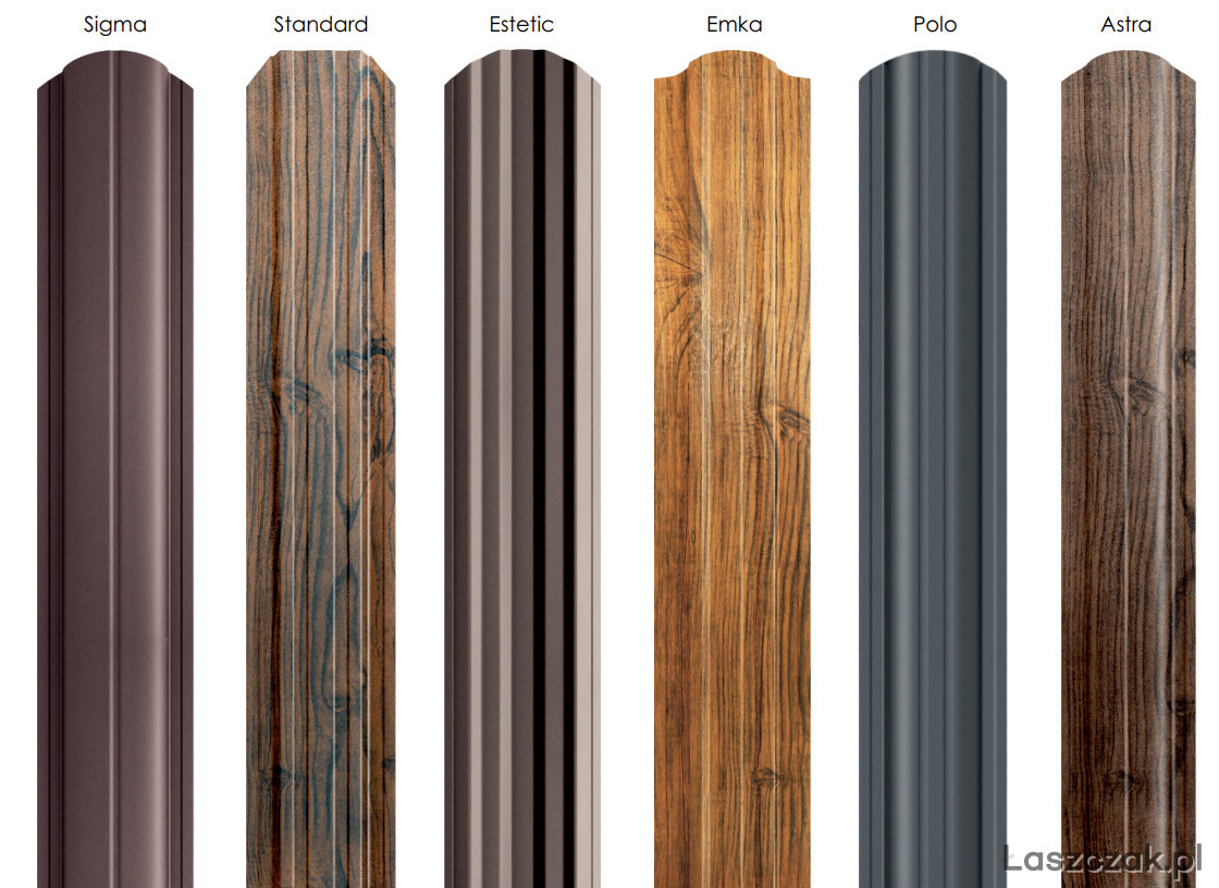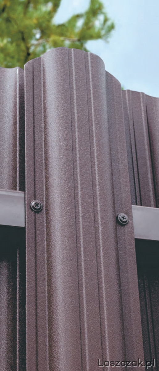 Sztachety również dostępne w powłoce matowej oraz drewnopodobnej ciemny dąb