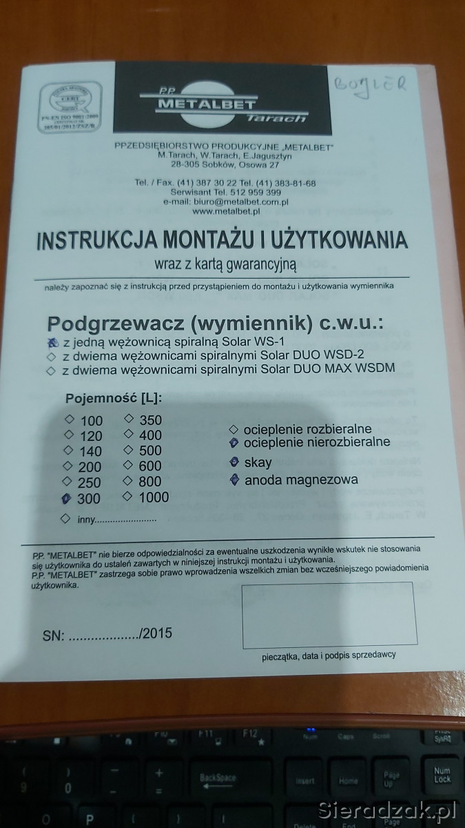 Sprzedam w pełni sprawny podgrzewacz c.w.u z grzałką 300l