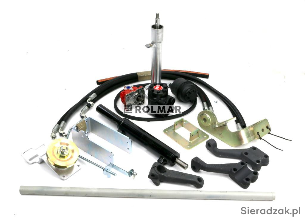 Wspomaganie układu kierowniczego C-330 posiada siłownik dwustronnego działania montowany wzdłużnie pasuje do ciągników Ursus C-330 z płaską osią przednią, napęd pompy z koła pasowego.