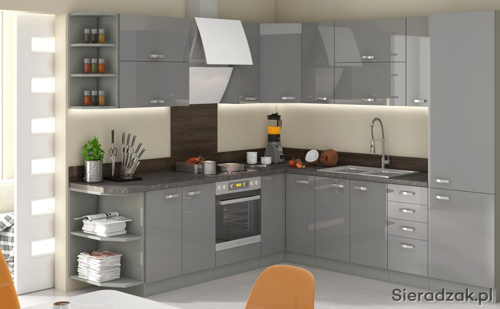ZESTAW- Kuchnia GRAY(szary polysk),- narożna 260 / 270 cm z BLATEM 38mm. - 3995 zlotych.