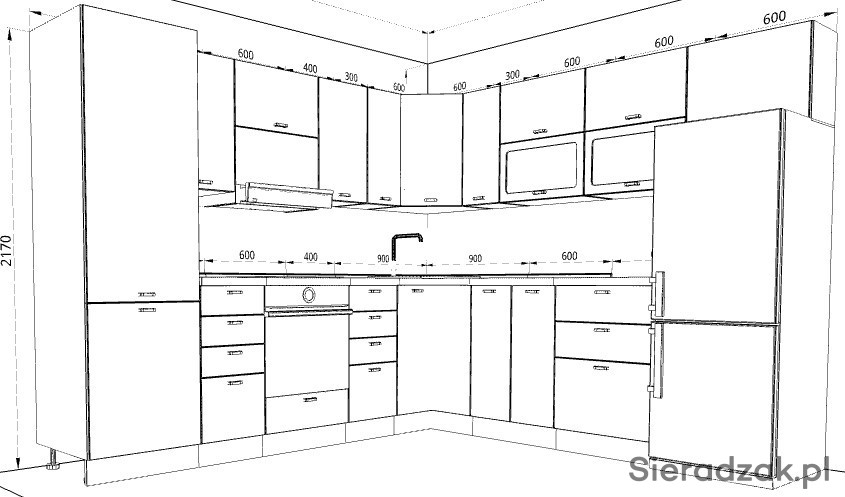Uwaga: szafki dolne dostarczane są z nogami, bez cokołu.
