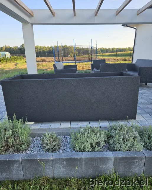 Donice pokryte sa tynkiem silikonowo silikatowy lub mogą być pokryte betonem architektonicznym.