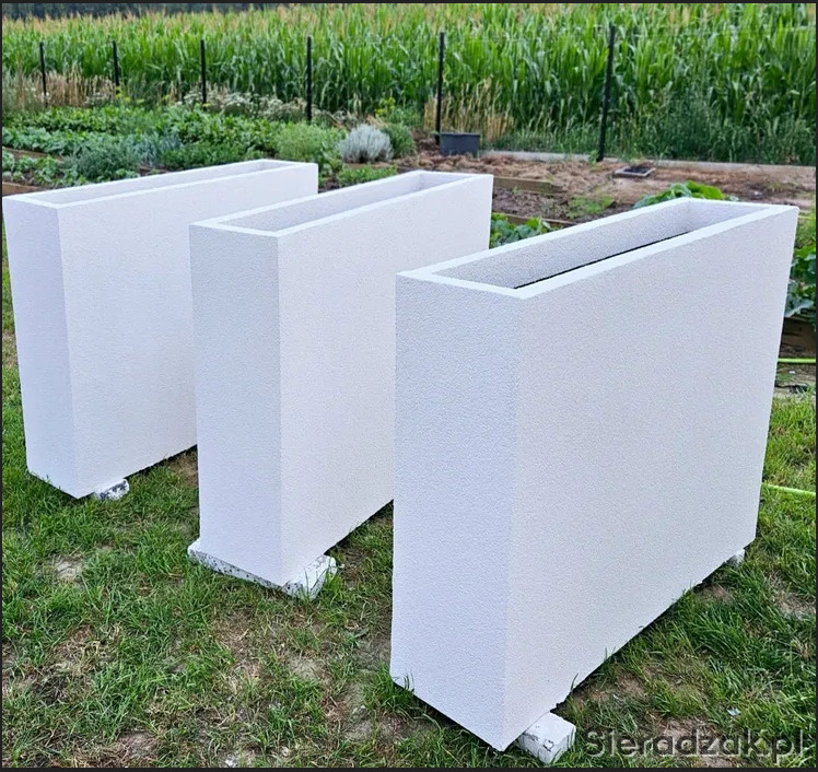 Donice są trwale, stabilne i uszczelnione w masie przy użyciu plastyfikatorów co sprawia że są wodoodporne. Estetycznie zakończone krawędzie. Wykonane są z styropianu, wzmocnione siatką do styropianu zatopioną w kleju oraz wstawione sa narozniki z dodatkową siatką w celu wzmocnienia krawedzi.