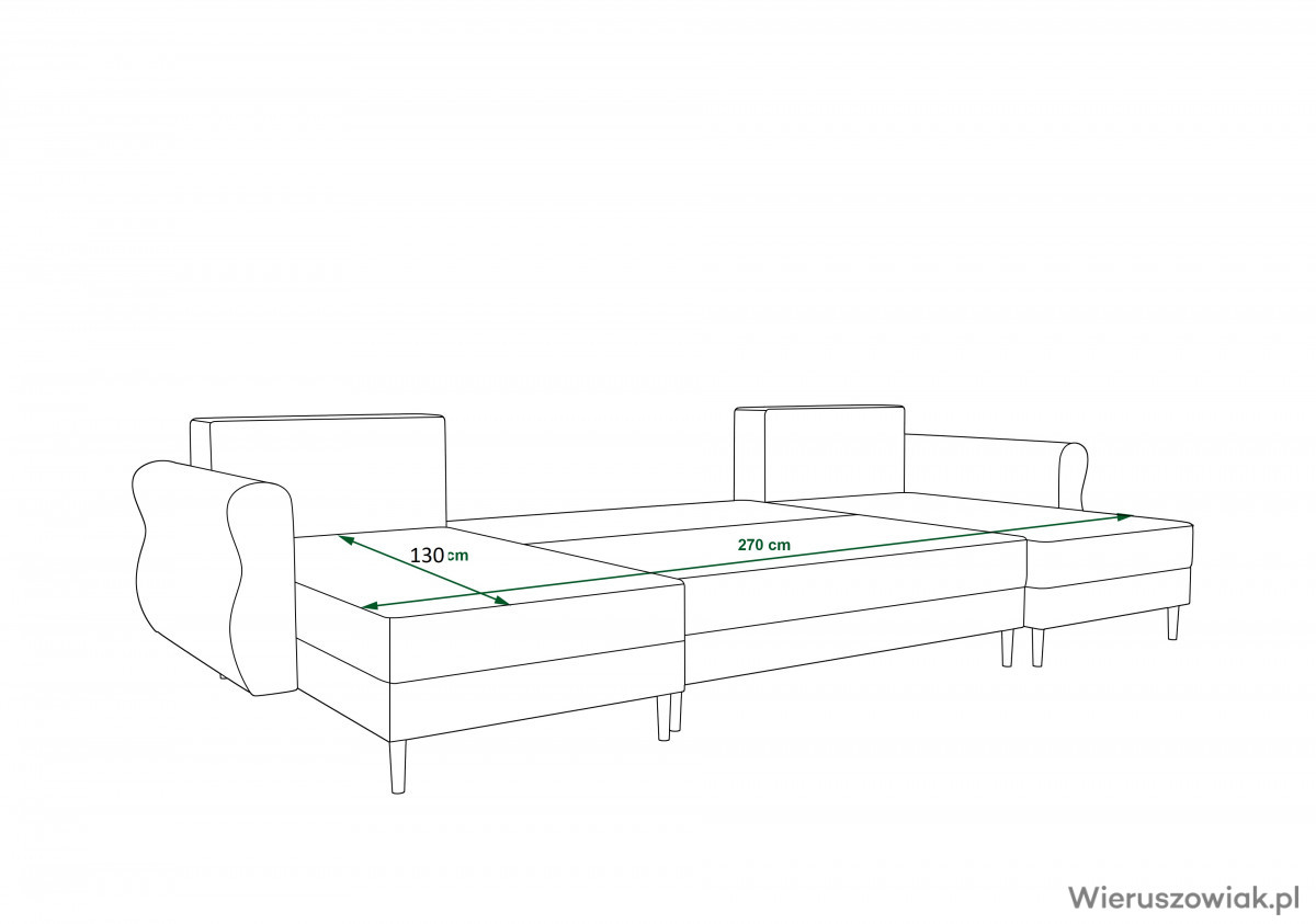 Narożnik Apollo to stylowy i funkcjonalny mebel, który doskonale sprawdzi się w każdym salonie. Posiada funkcję spania, co czyni go idealnym rozwiązaniem dla gości lub na codzienne użytkowanie. Dodatkowo, narożnik wyposażony jest w pojemnik na pościel, co pozwala na praktyczne przechowywanie.
