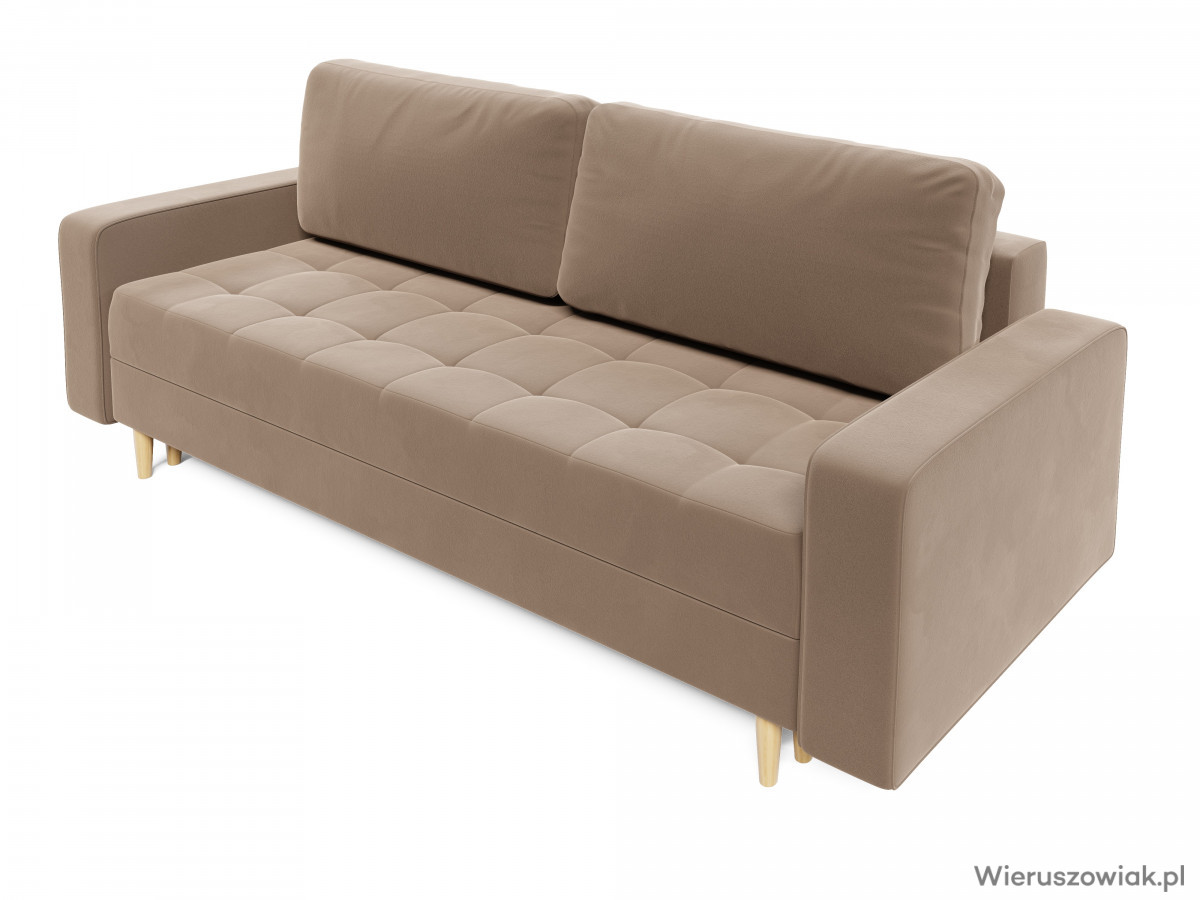 Sofa Prima to elegancki i funkcjonalny mebel, który doskonale wpasuje się w różnorodne wnętrza. Dzięki funkcji spania, łatwo przekształca się w wygodne łóżko, co czyni ją idealnym rozwiązaniem dla gości, zapewniając im komfortowy sen.