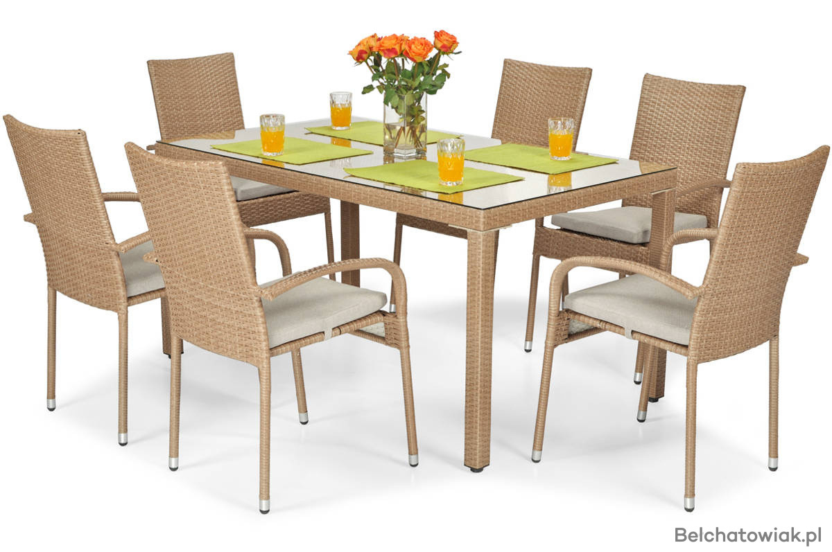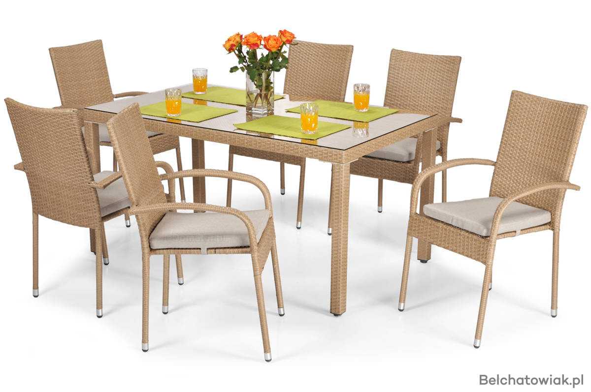Zestaw z technorattanu MALAGA stół 150 cm i 6 krzeseł - beżowy