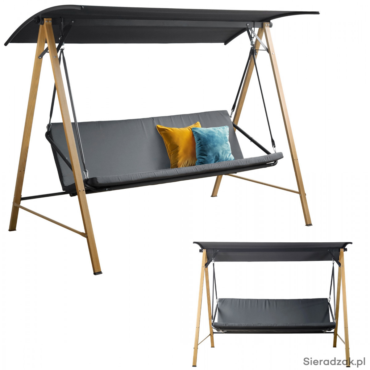Huśtawka ogrodowa 3-osobowa z daszkiem i poduszkami 54050