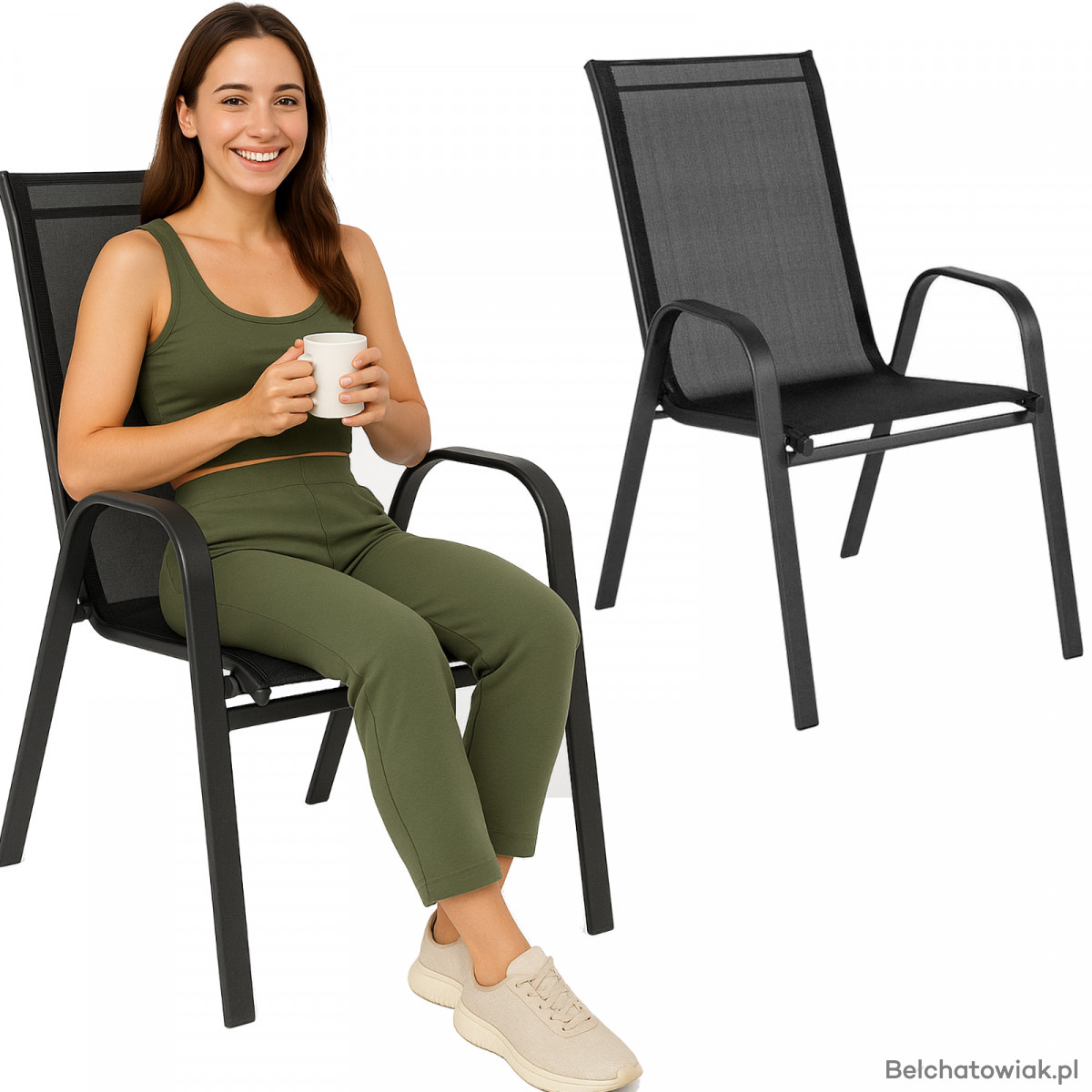 Wykonane z dbałością o każdy detal – solidna stalowa rama oraz poszycie z wytrzymałej plecionki textilene zapewniają wygodę siedzenia oraz odporność na warunki atmosferyczne.