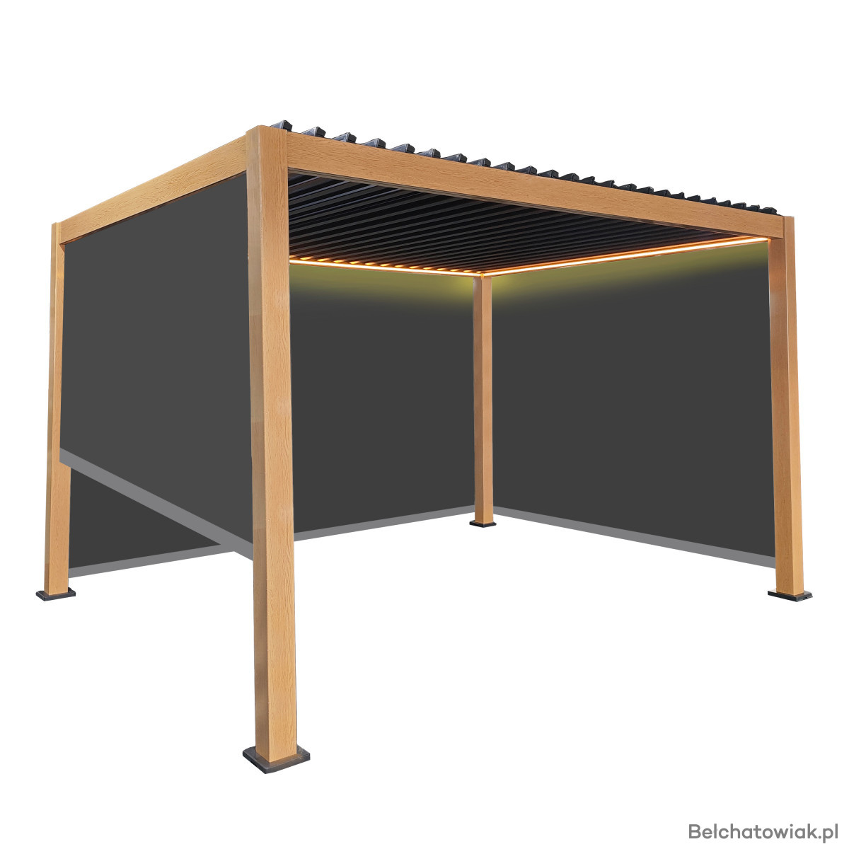 Pergola ogrodowa 3x4 m z oświetleniem LED i elektrycznymi kurtynami