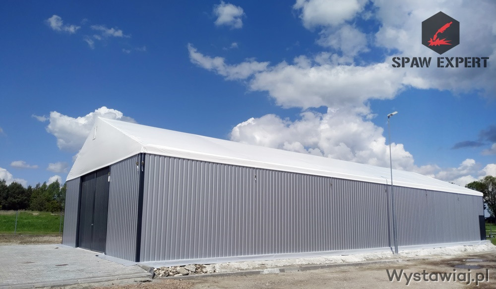 Konstrukcja stalowa jest zabezpieczona antykorozyjnie przez proces cynkowania ogniowego. Materiał dachowy to plandeka o gramaturze 680gr/m2, natomiast boki to blacha trapezowa T 18.