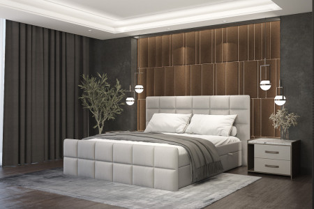 Łóżko VALENTINO PLUS to idealny wybór dla osób, które cenią komfort snu, elegancję oraz solidne wykonanie. Model utrzymany w stylu Modern Classic doskonale łączy ponadczasową klasykę z nowoczesnym wykończeniem. Charakterystyczne, głęboko pikowane wezgłowie w geometryczny wzór dodaje wnętrzu luksusowego charakteru i czyni łóżko wyjątkową ozdobą każdej sypialni.