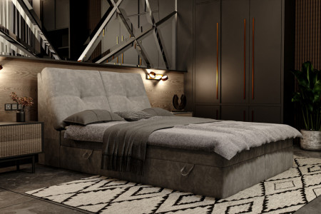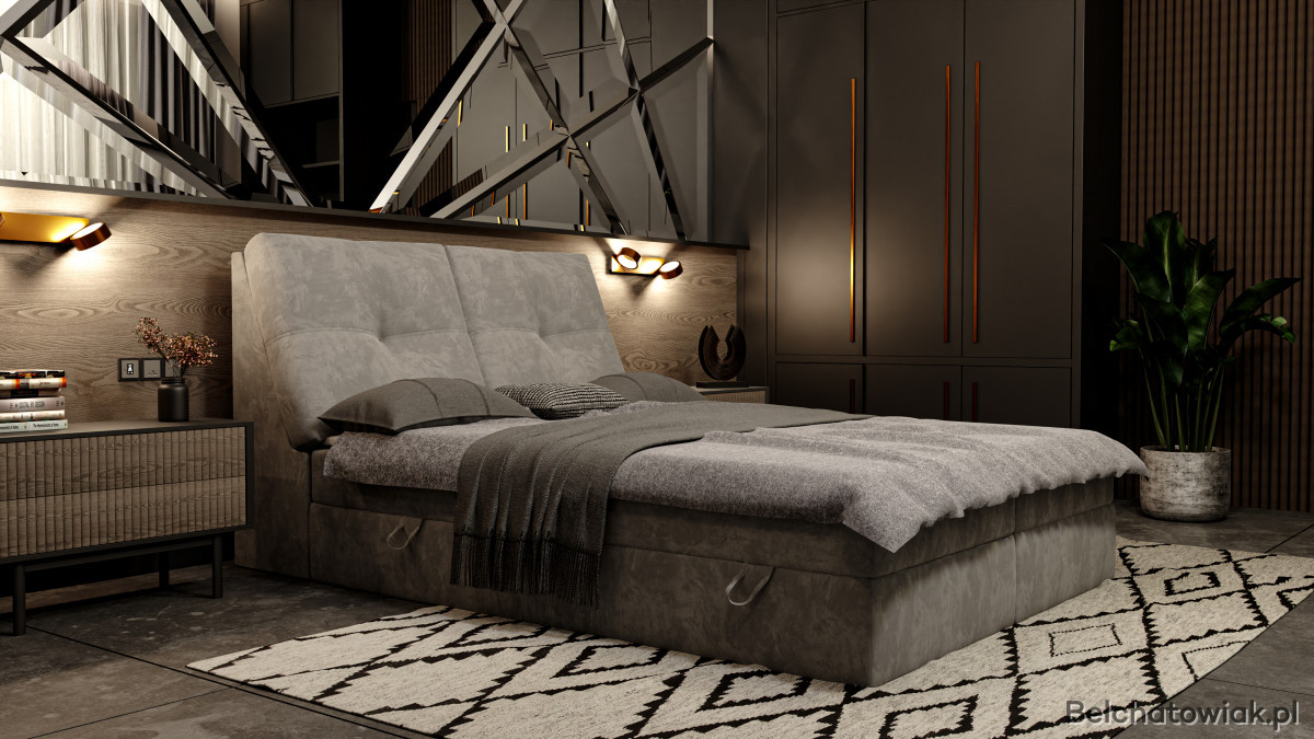 Łóżko doskonale komponuje się z różnymi aranżacjami wnętrz. Dzięki swojemu designowi staje się centralnym punktem sypialni, dodając jej elegancji i charakteru.