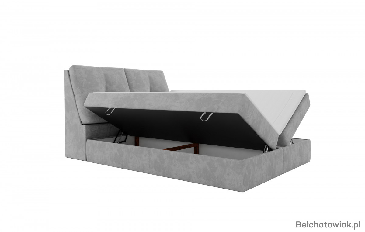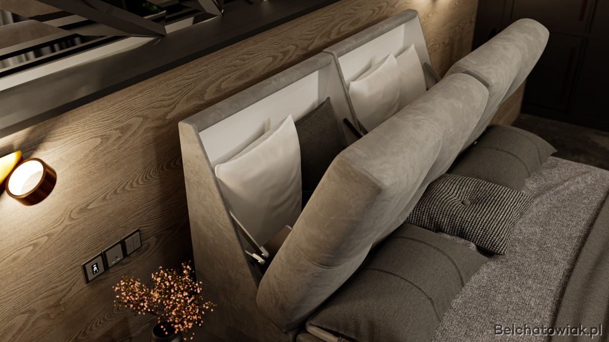 Mebel posiada dwa duże pojemniki, które pomagają utrzymać porządek w sypialni. Dodatkowo w zagłówku umieszczono dwa kolejne schowki, zapewniające jeszcze więcej miejsca do przechowywania.