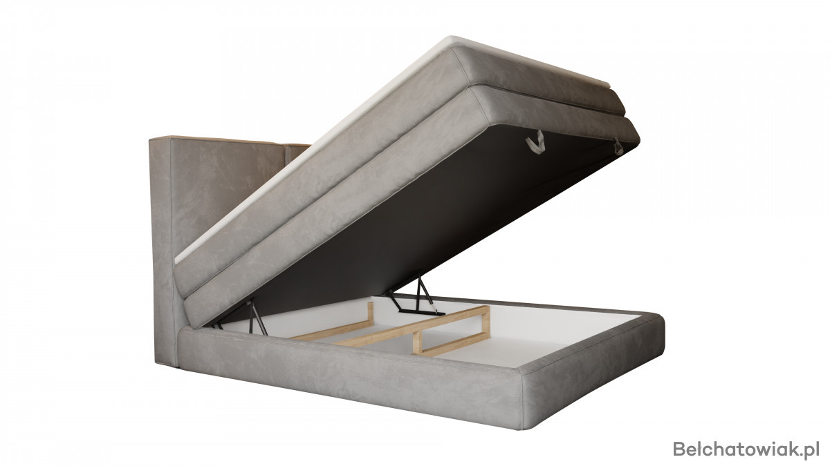 Model RUBY PLUS posiada duży pojemnik na pościel, który umożliwia przechowywanie kołder, poduszek czy koców. To praktyczne rozwiązanie pozwala utrzymać porządek w sypialni.
