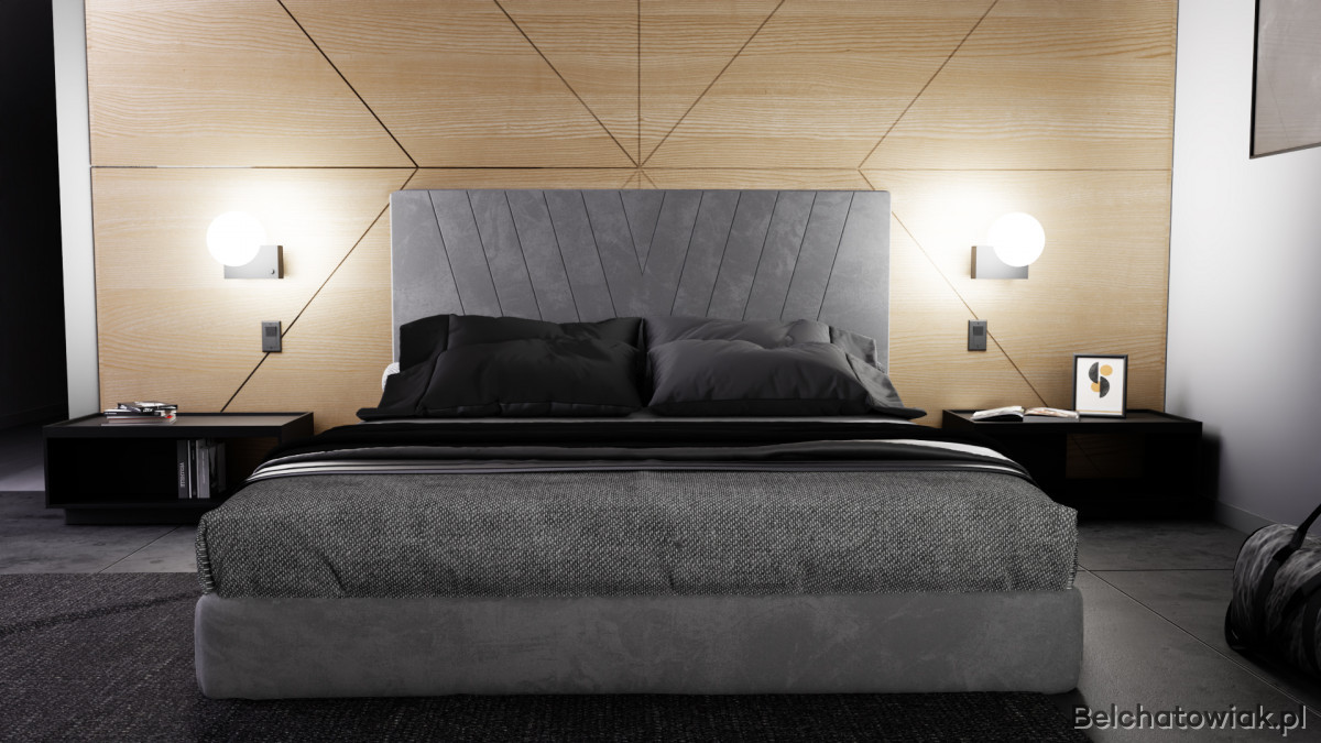 Łóżko ADRA zachwyca eleganckim charakterem i wyjątkowym designem. Wezgłowie tapicerowane we wzór litery V podkreśla nowoczesny styl, a jednocześnie nadaje sypialni przytulnego klimatu.
