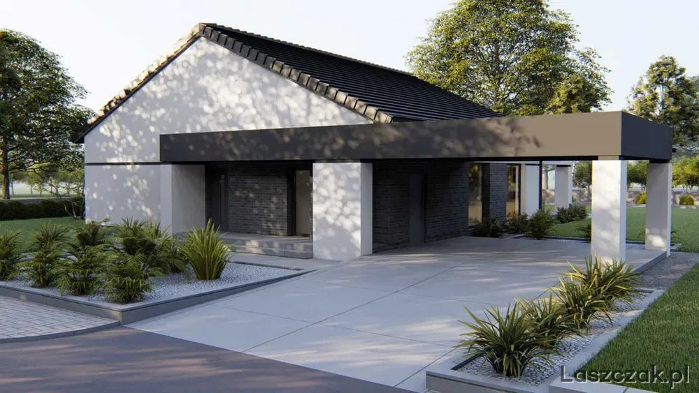 Energooszczędny dom jednorodzinny o powierzchni zabudowy 210,09 m² i powierzchni użytkowej 136 m² plus pergola garażowa 43,95m² położony na działce o powierzchni 1002 m² .