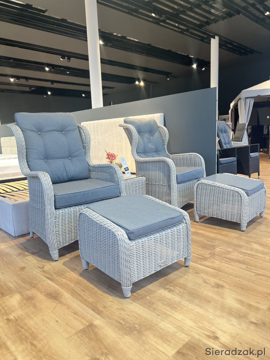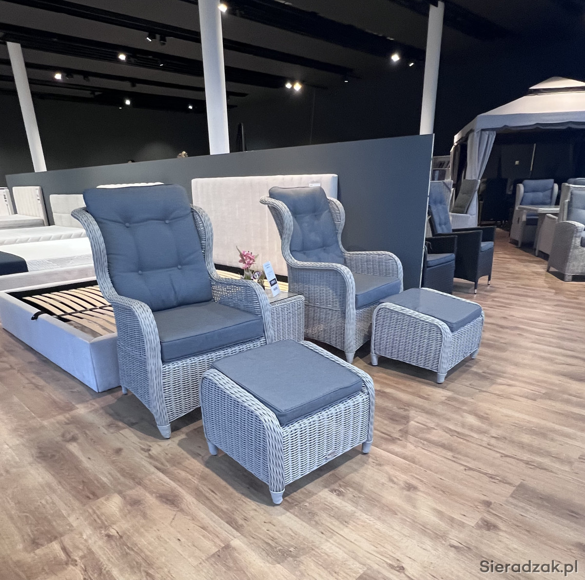 Zestaw mebli ogrodowych Comfort Grey składa się z dwóch krzeseł ogrodowych z podnóżkami oraz stolika kawowego w kolorze Grey. Zestaw wykonany jest z ręcznie plecionego okrągłego rattanu i posiada pasujące poduszki z poszewkami odpornego na UV w kolorze ciemnoszarym, zapewniające najwyższy komfort. Komfort siedzenia jest bardzo wysoki, a lato można w pełni cieszyć się na tych pięknych meblach ogrodowych.