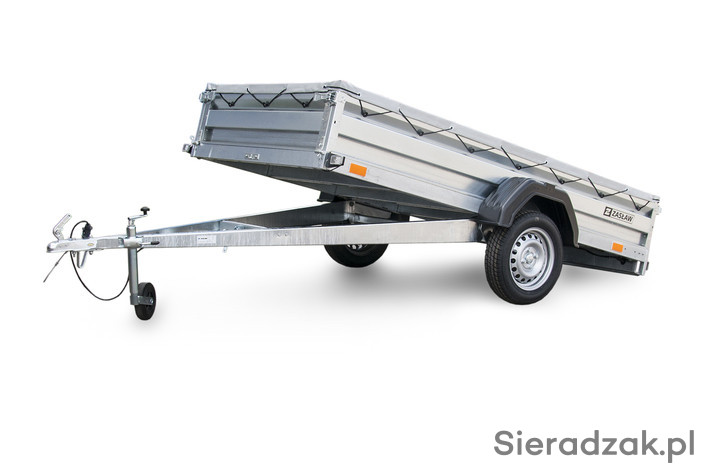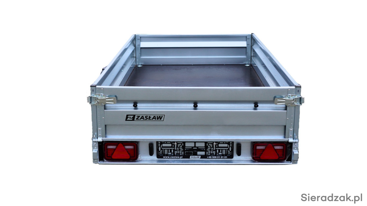 Przyczepy towarowe Zasław to nowoczesna linia przyczep samochodowych wykonanych z najlepszych dostępnych na polskim rynku materiałów. Produkty tej kategorii charakteryzuje m.in.: nowoczesny design burt walcowanych na zimno, wytrzymałe zaczepy burtowe z kompensacją oraz dyszel prowadzony od osi dla większej wytrzymałości konstrukcji. Wszystkie elementy ramy cynkowane są ogniowo, co gwarantuje ich trwałość i dużą odporność na korozję. Model 205SU posiada oś o DMC 750kg, uchylną skrzynię i otwieraną przednią burtę oraz system szybkiego demontażu burt.
