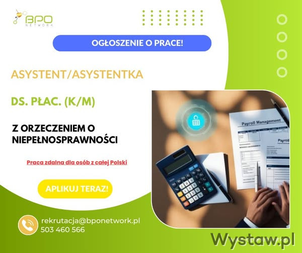 Asystent/Asystentka ds. płac. (K/M) z orzeczeniem o niepełnosprawności