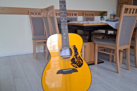 Gitara jest dla mnie zbyt duża, kupiłem drugą typu parlor, ma sporo mniejsze pudło.