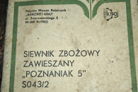 Sprzedam siewnik Poznaniak 2.7m 1984r. Wszystko sprawne, garażowany posiada rolki do zboża, nasion drobnych i grubych, znaczniki, rynienki do próby kręconej, spulchniacze za kołami, cetralny docisk redlic na sprężynach z regulacją, grabki za siewnikiem oraz oryginalną instrukcję obsługi z katalogiem części. Cena do negocjacji na miejscu zapraszam. Tel. 791686389