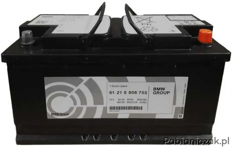 Akumulator BMW AGM 12V 92Ah 850A (EN) ORYGINALNY P+ OEM - Na Pierwszy Montaż