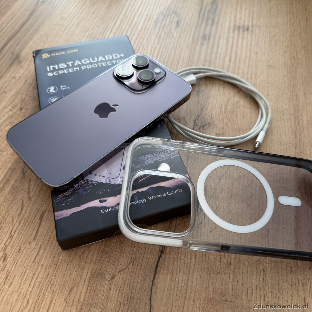 iPhone 14pro w kolorze głębokiego fioletu z wbudowaną pamięcią 256GB. Telefon używany, bateria została wymieniona na nową w iSpot Łódź 3 marca 2026. Na baterię obowiązuje gwarancja producenta 3 miesiące + 2 lata rękojmi w iSpot.