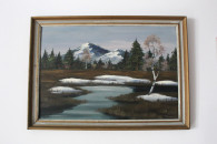 OBRAZ PEJZAŻ stary, ręcznie malowany, oryginał lokalizacja: Sieradz |